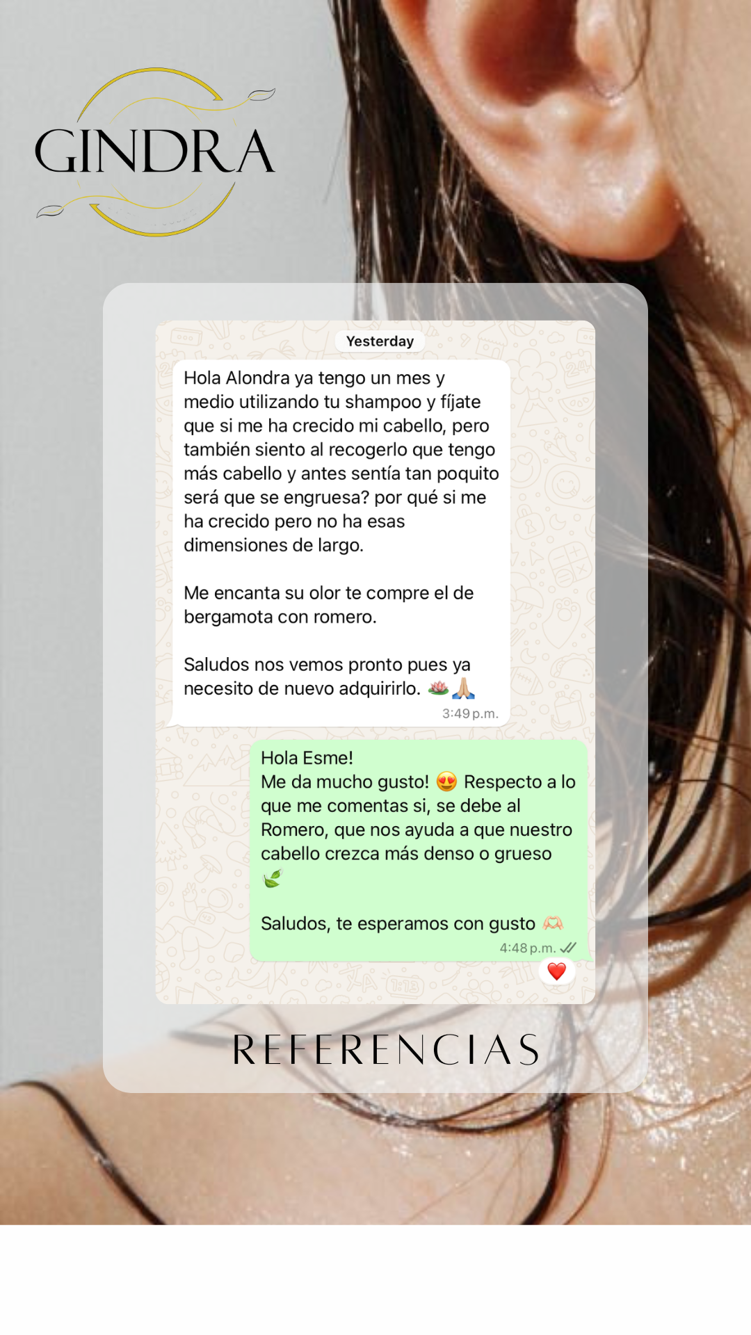 En Gindra, creemos que los mejores resultados se ven —y se sienten— en el día a día. Por eso, nada nos inspira más que leer las experiencias reales de quienes han transformado su cabello con nuestras fórmulas naturales. ✨